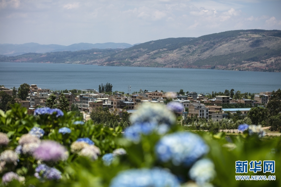 昆明阳宗海畔的村庄。新华网 赵普凡 摄