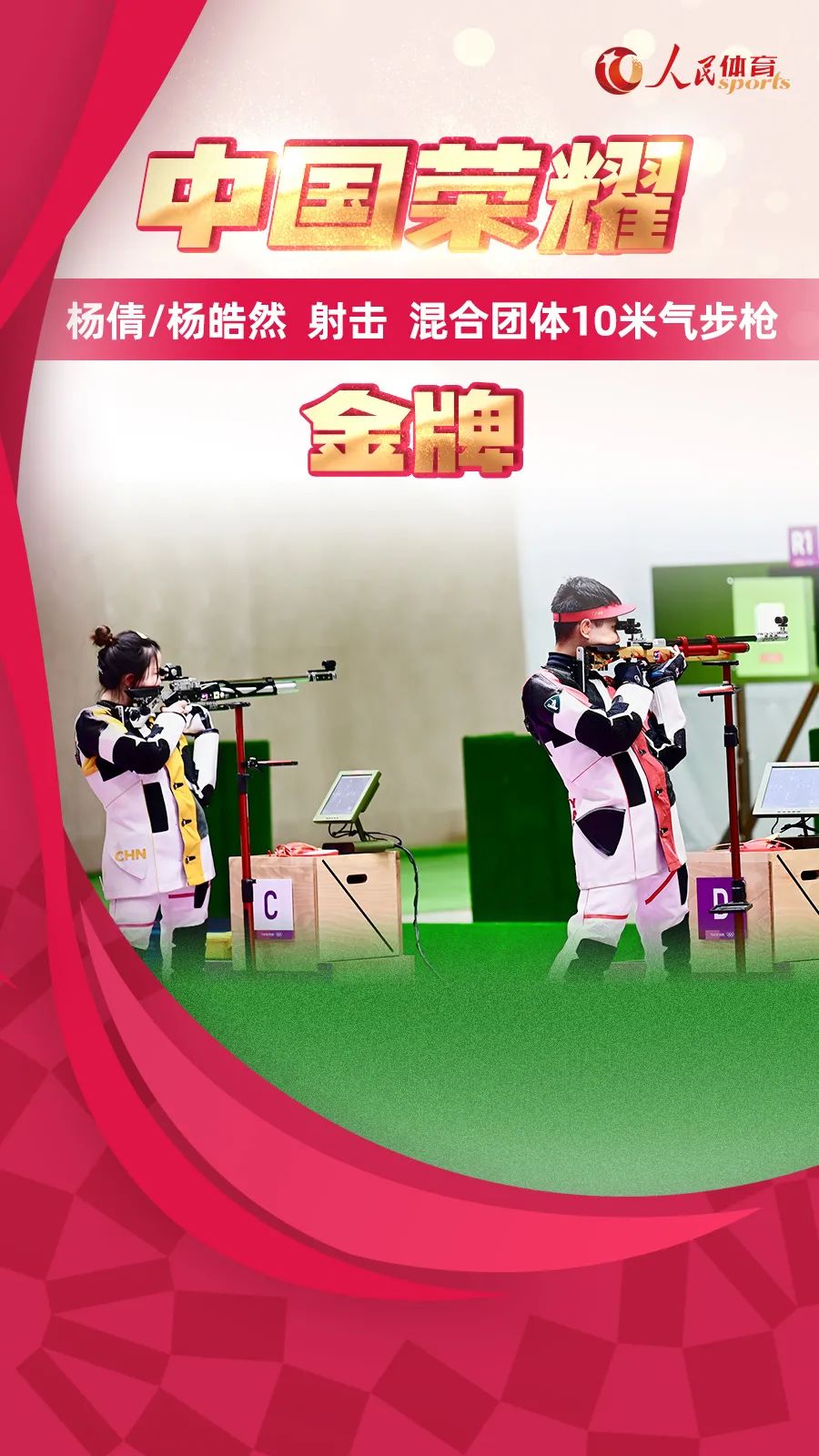 北京时间7月27日下午,中国组合杨倩/杨皓然在东京奥运会射击混合团体10米气步枪金牌赛中获胜,夺得冠军!中国体育代表团再添一金!