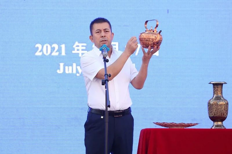 今年6月,喀什维吾尔族铜器制作技艺被确定为国家级非物质文化遗产代表性项目。今天,在新疆国际大巴扎经营手工铜器的苏来曼·麦麦提敏来到新疆维吾尔自治区在新疆国际大巴扎举行的专场新闻发布会上讲述了他现在的幸福生活。