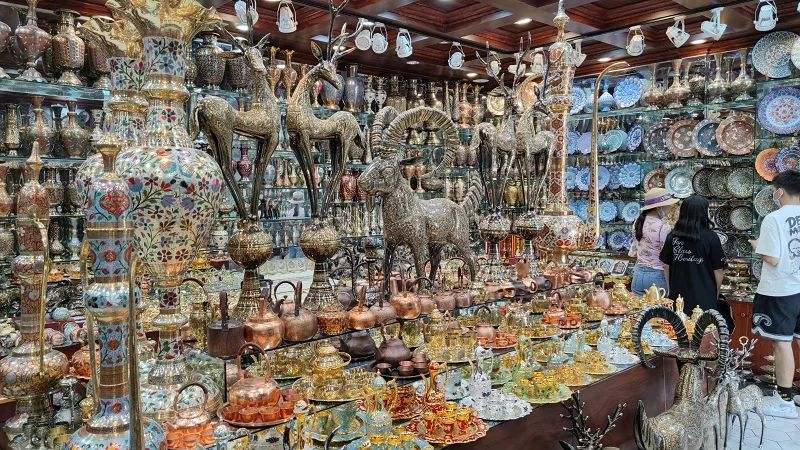 苏来曼·麦麦提敏的铜器店内产品种类多样