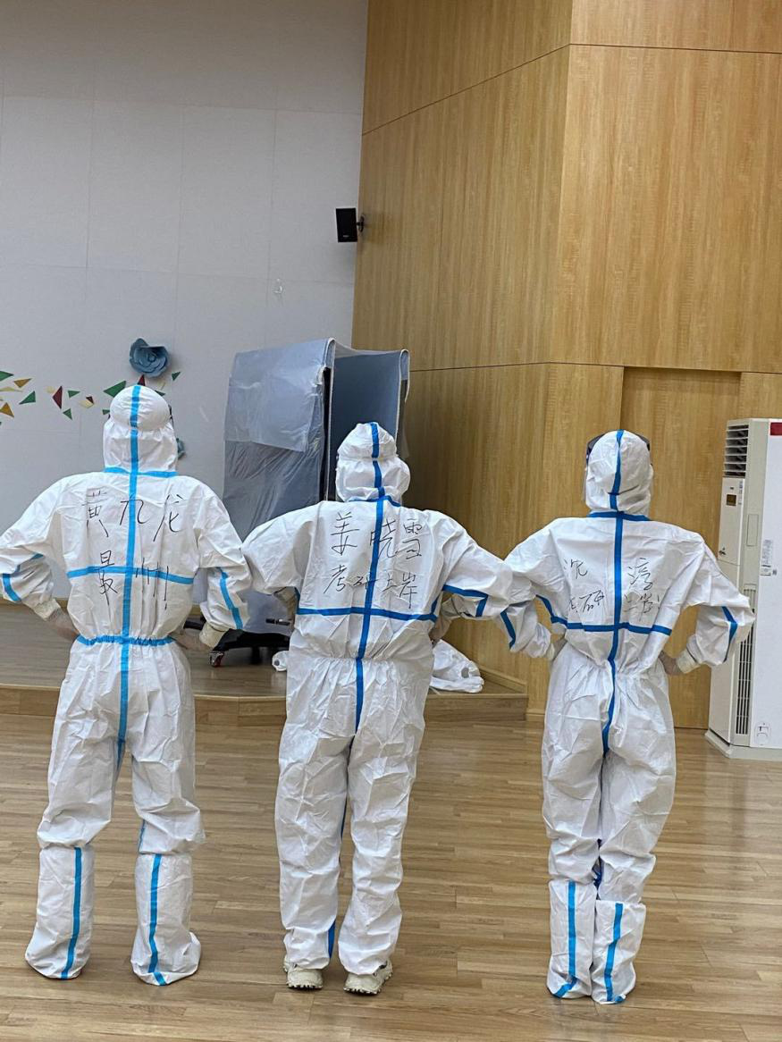 志愿者在防护服上写上名字和“最帅”“考研上岸”等文字