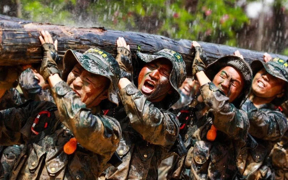 △2021年7月26日,陆军第八十三集团军某旅“红一连”战士在西安参加旅教导队集训。