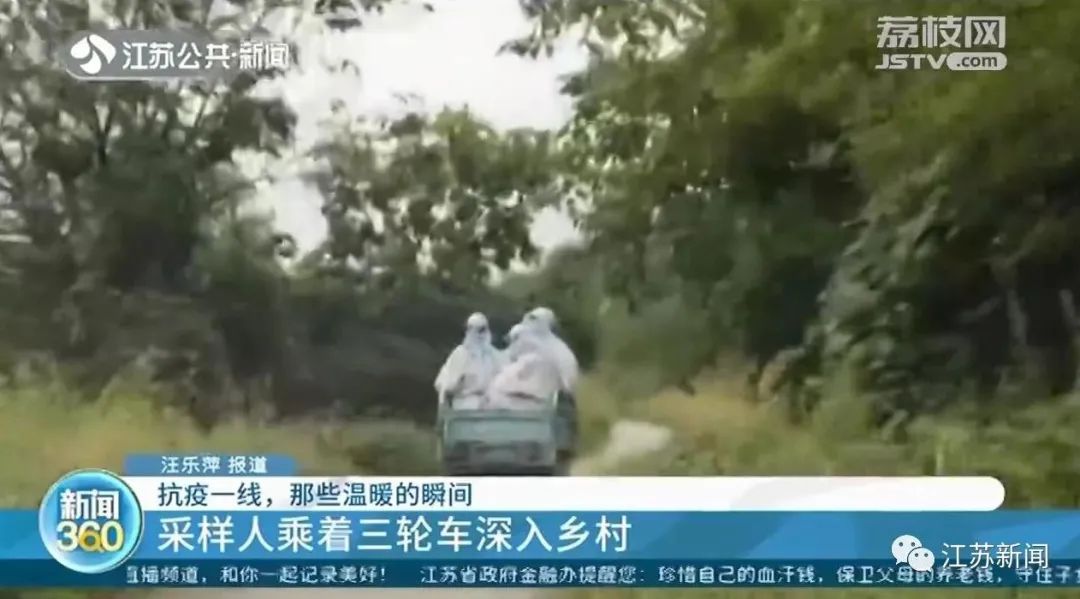 7月28日,南京禄口街道开展第四轮核酸。在面积较大、人口较多的社区,为了提高效率,前来支援的南京市中西医结合医院的医护们,乘坐电动三轮车,挨家挨户上门采样。