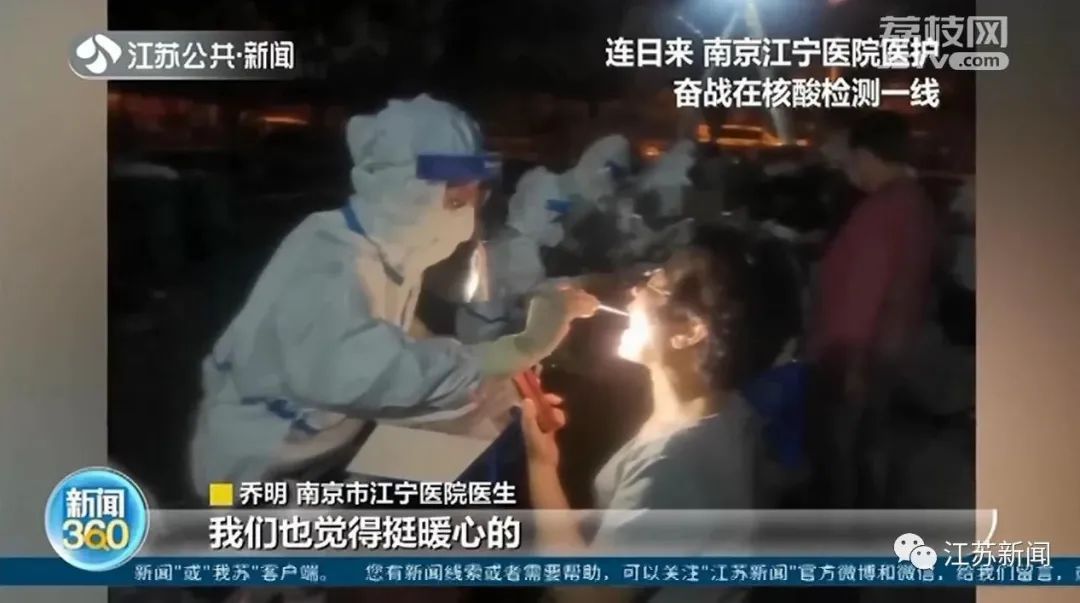 7月24日晚,乔医生和三位同事支援江宁东山街道第二轮核酸采样工作,从晚上八点一直忙到第二天凌晨三点,连续奋战7个小时。