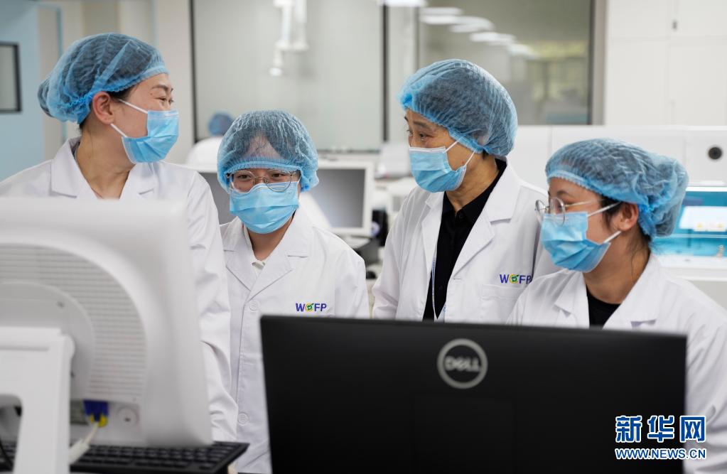 7月29日,国家成都新药安全性评价中心创办人王莉(右二)与实验室工作人员交流。新华社记者 刘梦琪 摄