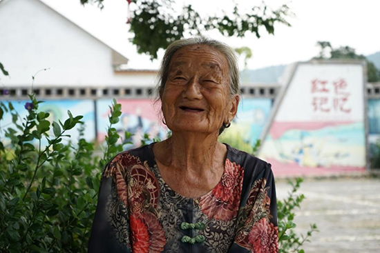 新刘庄村95岁高龄的宋传荣在村民广场纳凉。人民网 栗翘楚摄