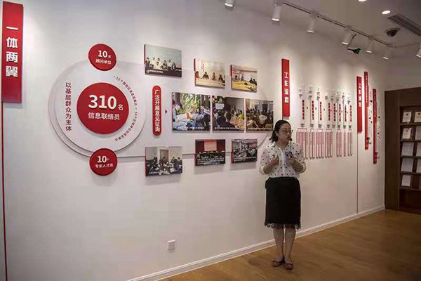 在上海长宁区虹桥街道的古北市民中心,荣华居民区党总支第一书记盛弘在介绍街道基层立法点的工作流程。人民网记者翁奇羽摄