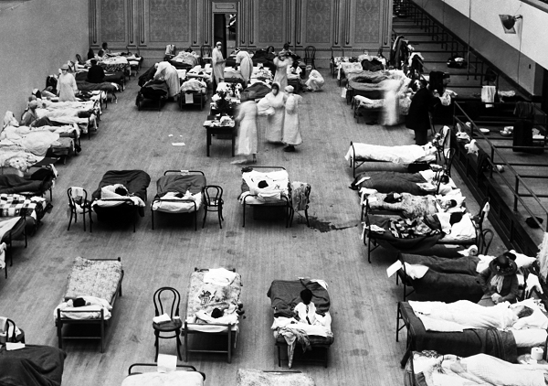 △1918年一流感病房内人满为患