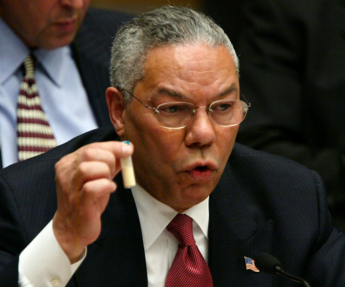 发动战争前,为了向国际社会证明动武的合法性,当时的美国政府高级官员多次宣称,已经掌握了伊拉克政府拥有大规模杀伤性武器的证据,甚至知道这些武器的具体存放位置。时任美国国务卿鲍威尔在联合国安理会会议上拿着一小瓶不明物质,向与会人员阐述这一小瓶所谓的“炭疽杆菌”的威力有多大。