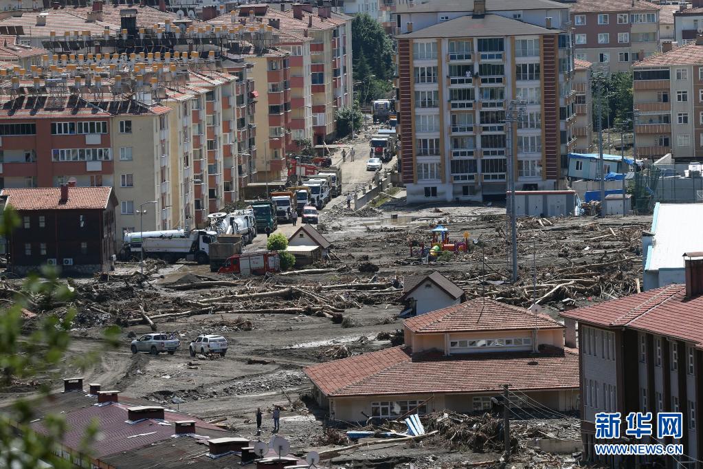 这是8月14日在土耳其卡斯塔莫努省阿巴纳拍摄的洪水过后的景象。新华社发(穆斯塔法·卡亚摄)
