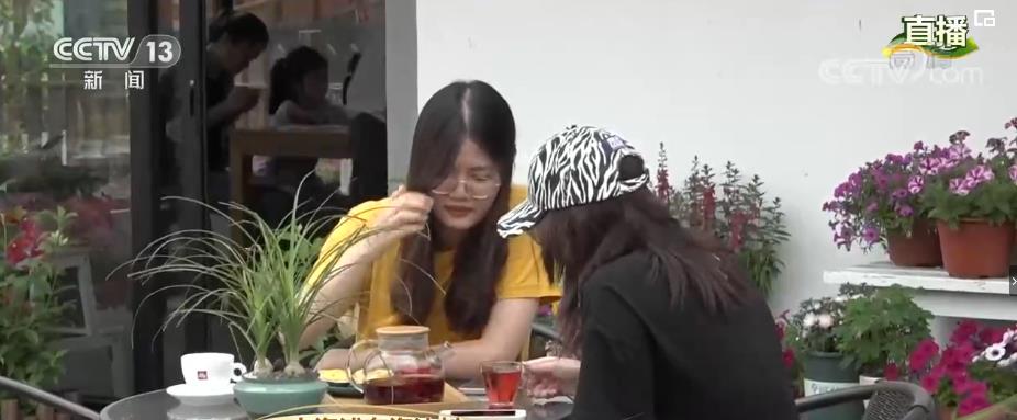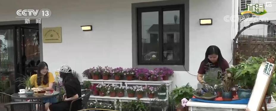 这个花坊还为村民提供盆栽换新服务,可以更新村民们自家种的一些花草,同时还可以培训村民如何更好地种植花艺。正值周末,“乡间花坊”的小院里有游客正在品尝咖啡和甜点。这些咖啡和甜点也来自“十二工坊”之一,叫作“屋里厢咖啡馆”。这家咖啡馆也是由以前的一个老屋改造的。改造之前屋顶经常漏雨,而且并不十分牢靠。改造过后,整个咖啡馆变得又美观又敞亮。