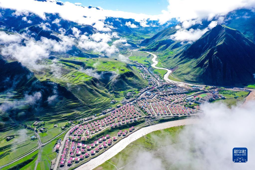 昌都市丁青县尺牍镇的易地扶贫搬迁点(2020年6月14日摄,无人机照片)。新华社记者田金文 摄
