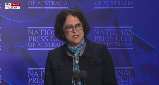 (图为今年4月在澳大利亚全国记者俱乐部的活动上发言,让澳大利亚媒体不要偏听偏信的葛丽珍教授)