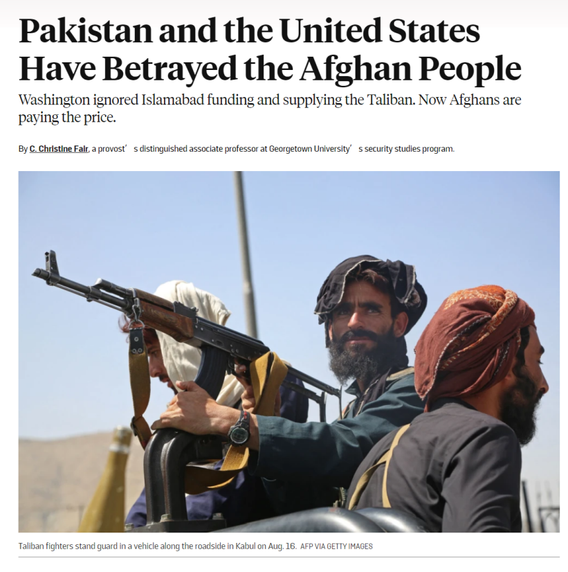 △《外交政策》的文章标题:“巴基斯坦和美国背叛了阿富汗人民”