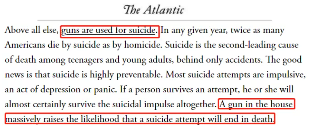 △《大西洋月刊》:家里的一把枪大大增加了自杀的可能性。