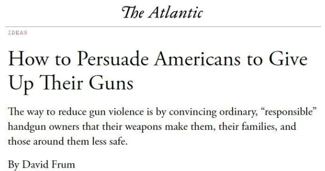 这是定于10月出版的新一期《大西洋月刊》在其预发长文《如何说服美国人放弃他们的枪》中道出的一个现实的美国难题及解题方法。
