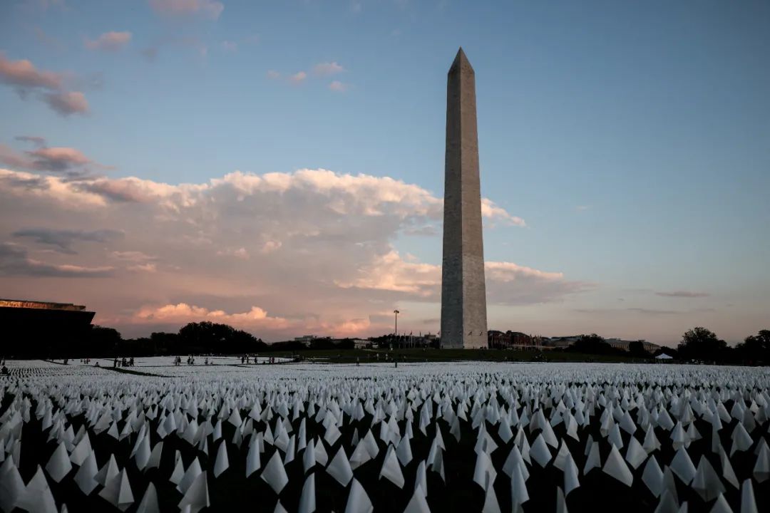 △当地时间2021年9月18日,华盛顿国家广场上插着数十万白色旗帜,悼念新冠肺炎病亡者。(图自视觉中国)