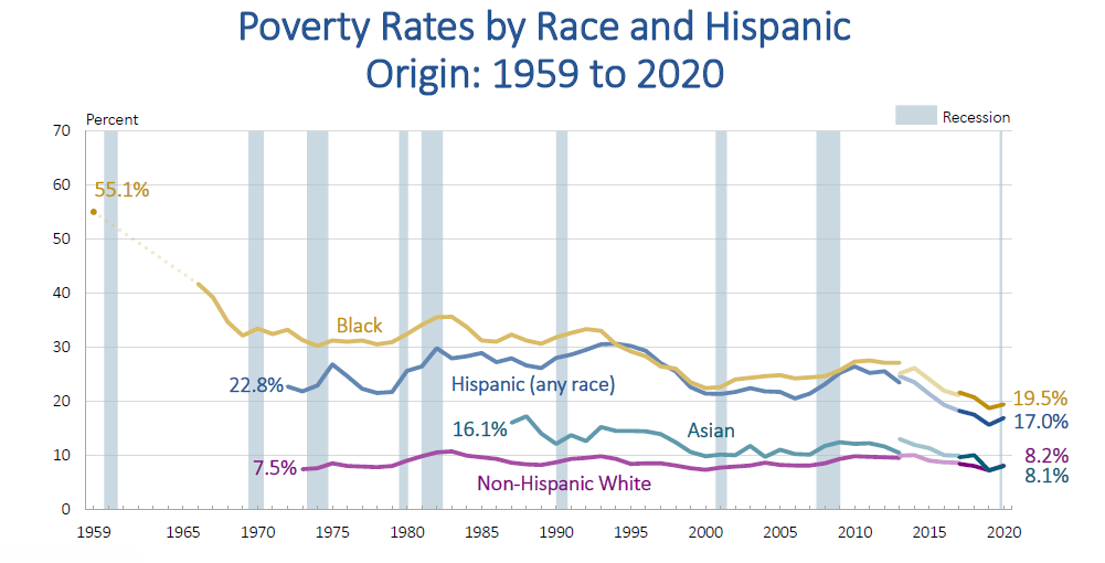 △美国人口普查局的最新数据显示,非洲裔美国人的贫困率从2019年的18.8%升至2020年的19.5%,升幅在调查的各族裔中最高。