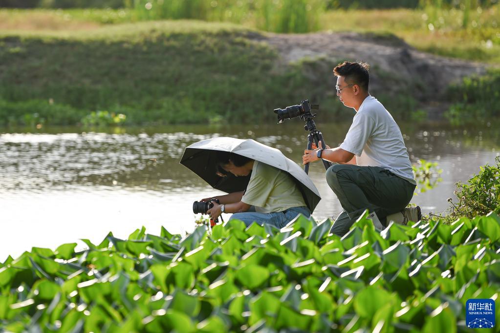 9月20日,在拍摄天舟三号货运飞船发射结束后,航天摄影发烧友关天宇和陈玉成比较他们各自晒出的手表印。新华社记者 蒲晓旭 摄