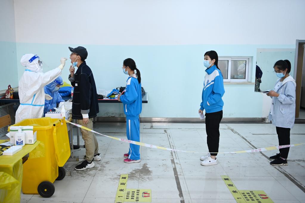 9月23日,在哈尔滨市香坊区一核酸检测点,市民在排队进行核酸检测。新华社记者王建威摄