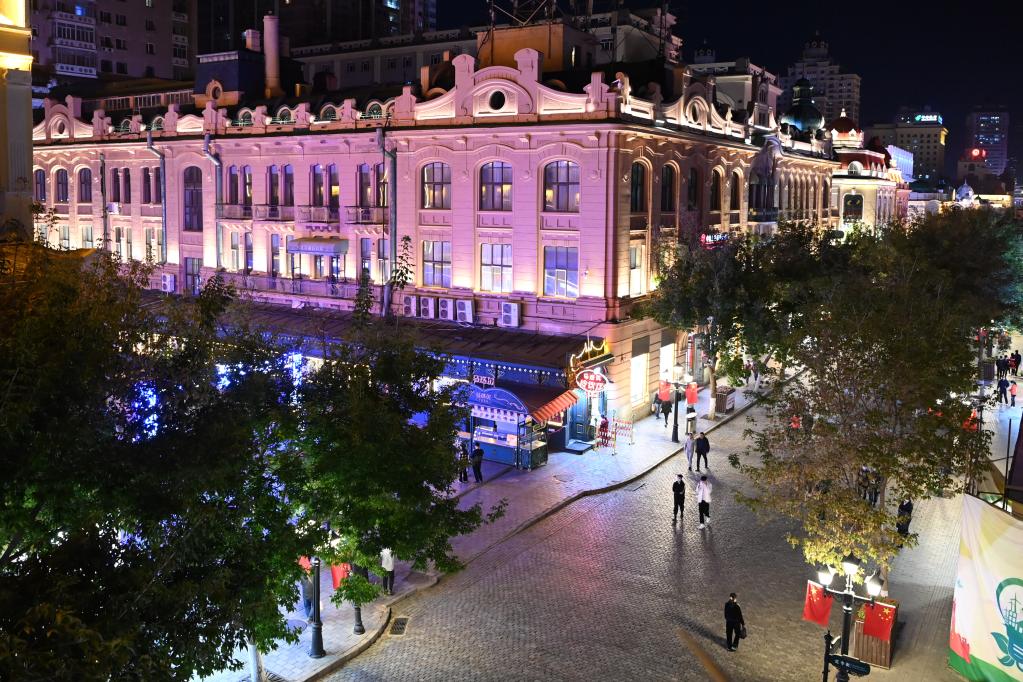 9月23日,哈尔滨市中央大街夜景。新华社记者王建威摄