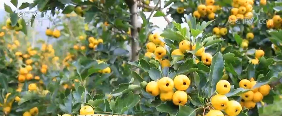 在山楂园深处有一片黄色山楂果,是当地人培育的新品种,不仅个头大,而且口感清甜,受到市场青睐。