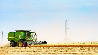 7月31日,中国石油新疆油田分公司吉庆油田作业区吉七井区周围吉木萨尔县北庭镇的农民收割小麦。张昀摄/光明图片