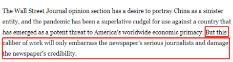 希尔齐克在文章中毫不留情地揭露说,长期以来,《华尔街日报》的观点版一直以扭曲政治和经济事实而“闻名”,最近更是成为了“炮制新冠病毒‘实验室泄漏论’的中心”。