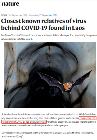 希尔齐克指出,除了最狂热的阴谋论者,几乎所有人都抛弃了“实验室泄漏论”。值得注意的是,穆勒和奎伊完全没有提到最近有关驳斥“实验室泄漏论”的研究成果,包括发现蝙蝠携带有与新冠病毒非常相似的病毒。