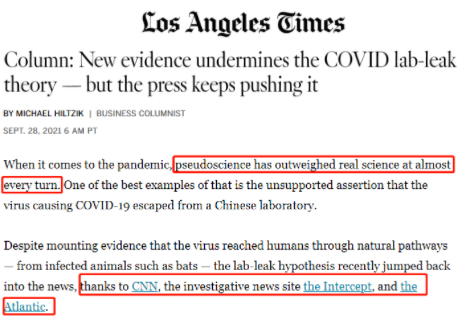 就在抨击《华尔街日报》前十天的当地时间9月28日,希尔齐克已在《洛杉矶时报》发表专栏文章,批评美国有线电视新闻网(CNN)和《大西洋月刊》等主流美媒在大量科学研究已证明新冠病毒自然起源的情况下仍蓄意误导舆论。