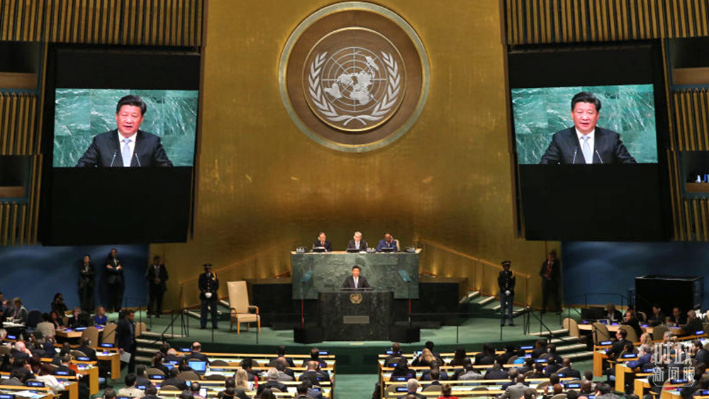 △2015年9月28日,习近平主席在纽约联合国总部出席第70届联合国大会一般性辩论,并发表题为《携手构建合作共赢新伙伴 同心打造人类命运共同体》的重要讲话。(资料图)
