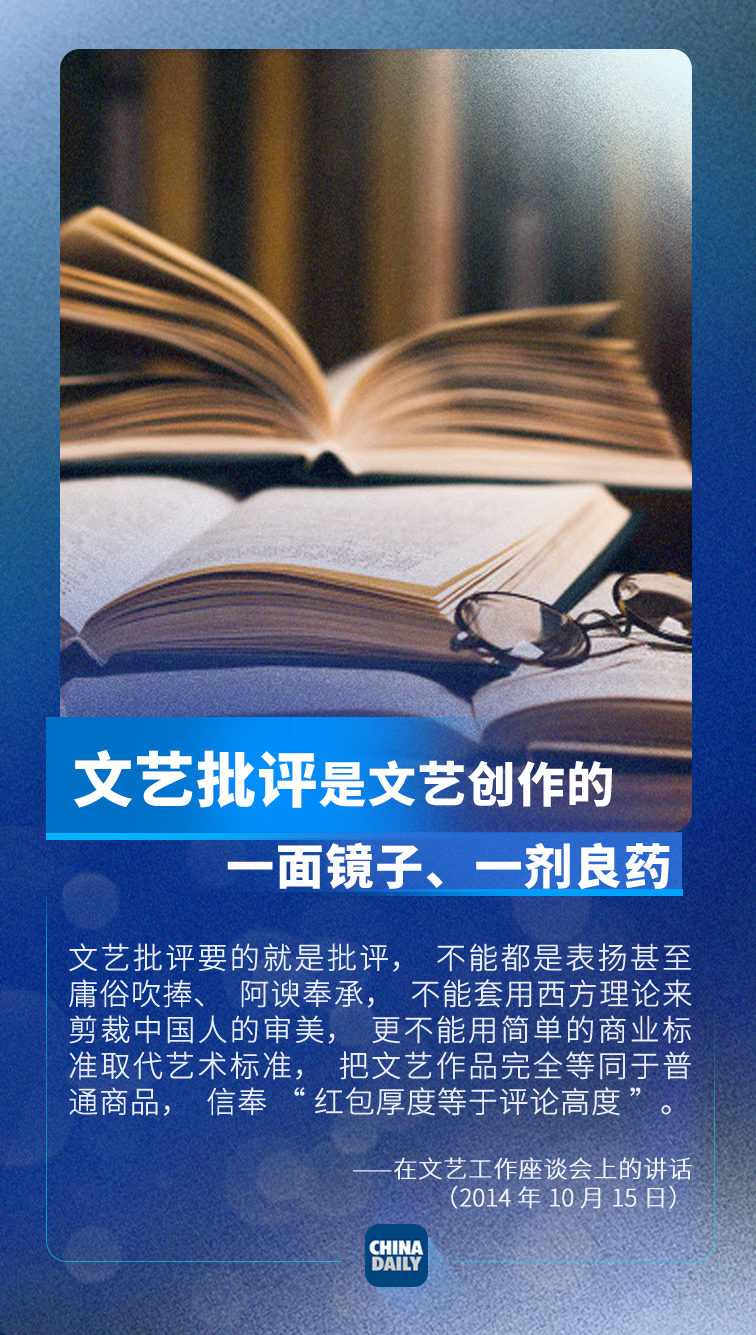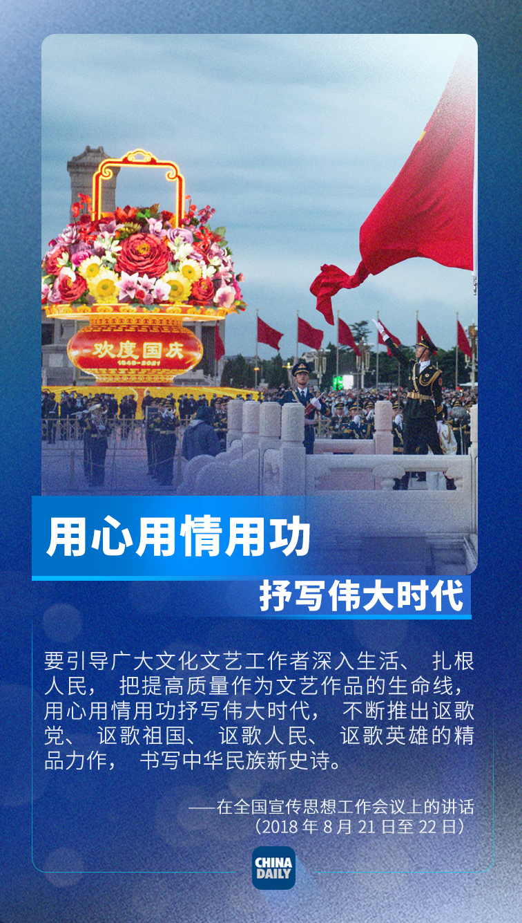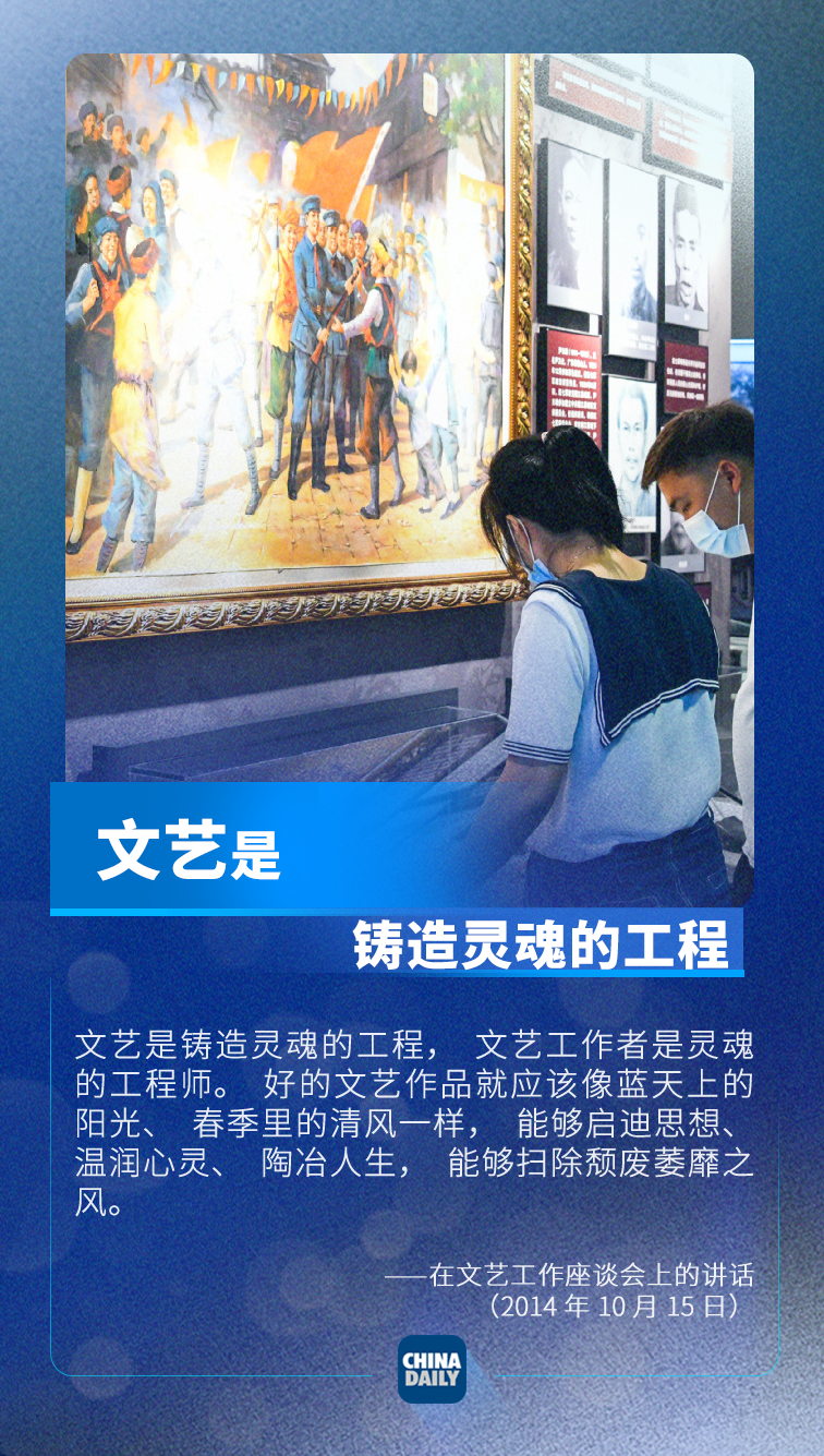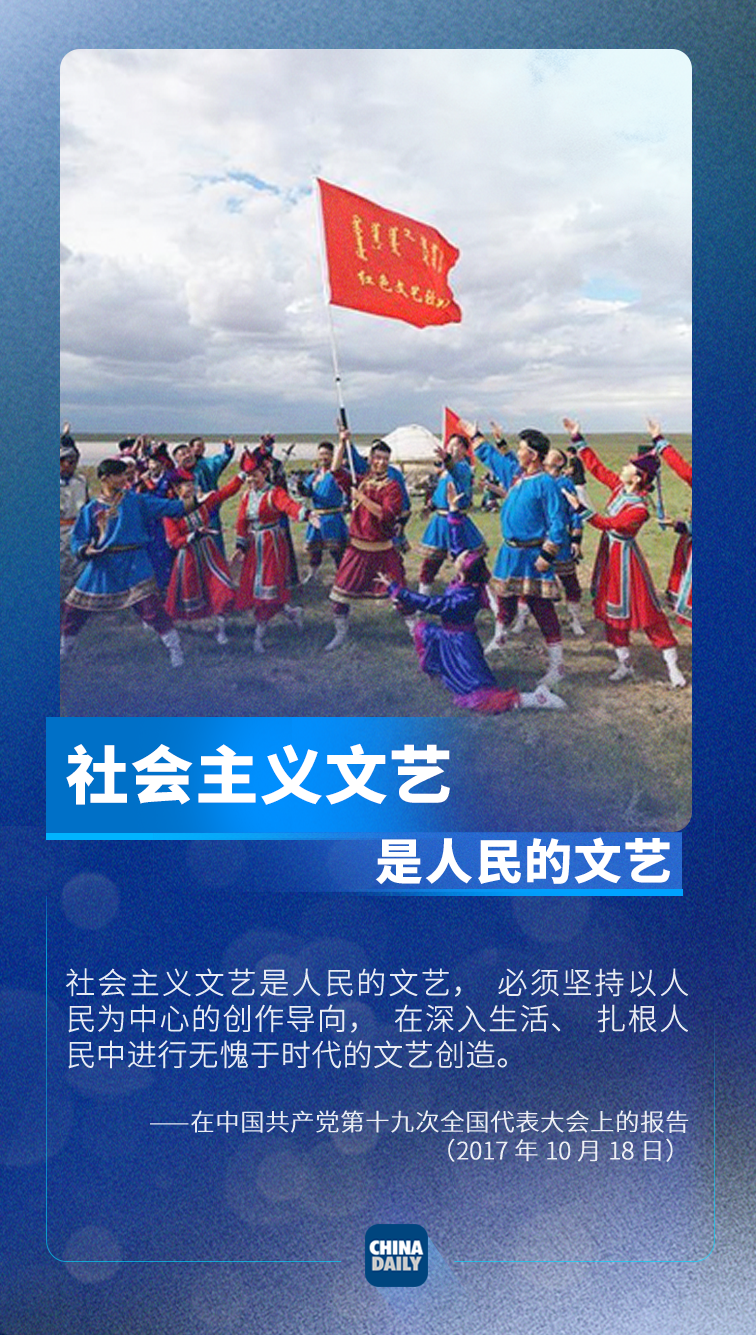 时刻新闻 —分享— 2014年10月15日,习近平总书记主持召开文艺工作座谈会强调,坚持以人民为中心的创作导向,创作更多无愧于时代的优秀作品。关于文艺工作,习近平总书记有哪些重要论述?中国日报网带你一起学习。 来源:中国日报网 编辑:彭笑予