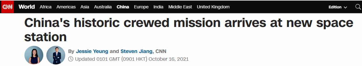 CNN报道说,周六(10月16日)早上中国三名航天员抵达了空间站——这是中国“年轻的”太空计划迈出的重要一步,而该计划正迅速成为世界上最先进的太空计划之一。