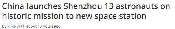 全球天文科学知名网站“太空网”发表题为《中国神舟十三号航天员前往新空间站执行历史性任务》的文章。