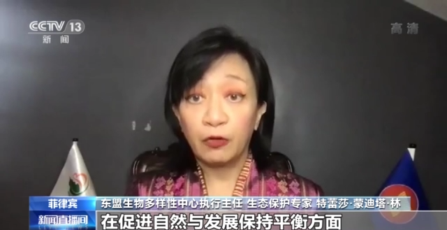 东盟生物多样性中心执行主任 生态保护专家 特蕾莎·蒙迪塔·林:我认为在促进自然与发展保持平衡方面,中国一直走在最前沿。正如我们所看到的,在过去的一年中,中国某些地区特别是在云南,那里有非常多的保护区,森林在得到保护和恢复,同时你会看到人们的生活也在改善。