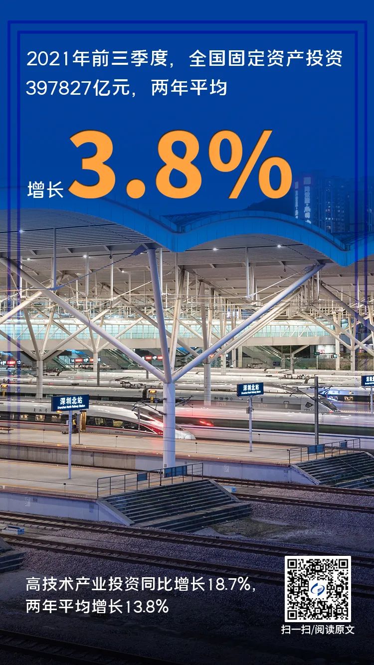 前三季度,全国固定资产投资(不含农户)397827亿元,同比增长7.3%,两年平均增长3.8%;9月份环比增长0.17%。