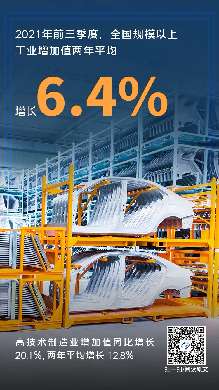 高技术制造业增加值同比增长20.1%,两年平均增长12.8%。分产品看,前三季度新能源汽车、工业机器人、集成电路产量同比分别增长172.5%、57.8%、43.1%,两年平均增速均超过28%。分经济类型看,前三季度国有控股企业增加值同比增长9.6%;股份制企业增长12.0%,外商及港澳台商投资企业增长11.6%;私营企业增长13.1%。9月份,制造业采购经理指数(PMI)为49.6%,其中高技术制造业PMI为54.0%,高于上月0.3个百分点;企业生产经营活动预期指数为56.4%。