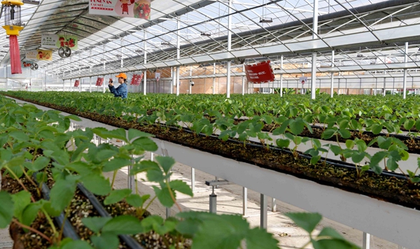 金秋十月,江苏省东海县四季果园里一株株草莓苗长势喜人,每一排草莓苗旁还有两根细细的黑色管道。“这是我们的滴灌带,采用了水肥一体化的技术,把营业液输送到每一个植物的根系,肥料利用率可以提高20%。”10月19日,该园行政部经理范月龙说,“以前一个大棚需要6个人施肥,现在只需要1个人就可进行技术管理。”