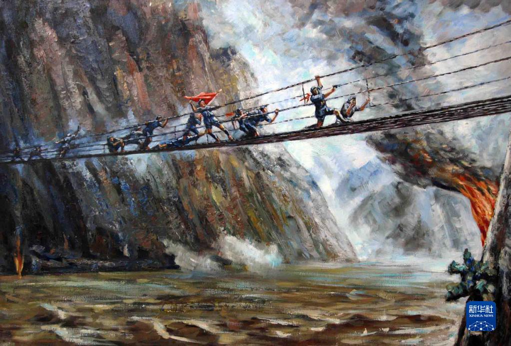 这是描绘红军飞夺泸定桥的油画。新华社发