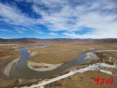 白河是黄河上游的一条支流,它蜿蜒九曲,在草原上划出一道道舒缓优美的弧线,恰似一轮轮新月,“月亮湾”因此而得名。10月19日,“母亲河畔的中国”采访团来到位于四川省阿坝州红原县的“月亮湾”,这里主要以白河景观和湿地草原风光为主,因其绝佳的生态环境,成为国家一级保护动物黑颈鹤的栖息地。