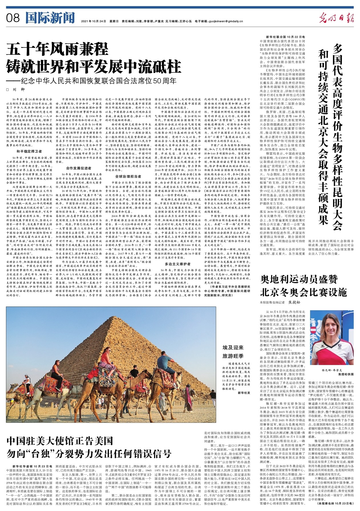 50年前,第26届联合国大会以压倒性多数通过2758号决议,恢复了中华人民共和国的合法席位。这是一件具有划时代意义的事件,标志着占世界四分之一人口的中国重返联合国大家庭,增强了联合国的普遍性、代表性和权威性,使其成为名副其实的全球性国际组织。50年来,中国始终恪守联合国宪章宗旨和原则,无惧风雨险阻,砥砺奋进,成为世界和平与发展事业的中流砥柱。