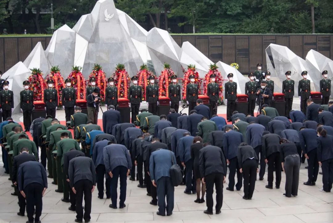 9月1日,第八批在韩中国人民志愿军烈士遗骸交接仪式在韩国仁川机场举行。张悦 摄