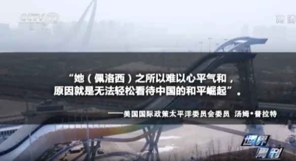 美国国际政策太平洋委员会委员 汤姆•普拉特:“她(佩洛西)之所以难以心平气和,原因就是无法轻松看待中国的和平崛起”。