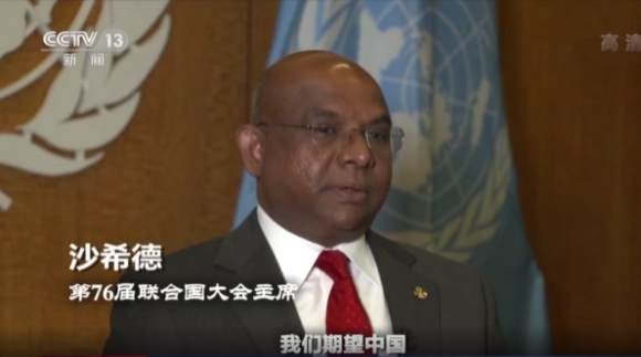 第76届联合国大会主席 沙希德:我们期望中国可以继续走多边主义道路,在气候变化、多边主义和处理联合国与人类如今面临的其他问题上发挥带头作用。