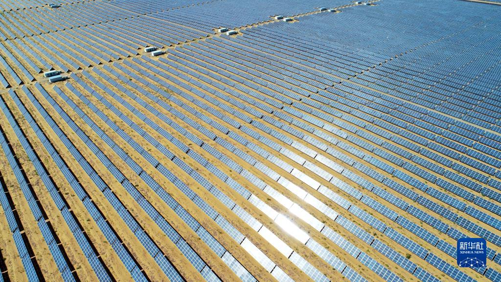 这是宁夏中卫市沙漠光伏产业园光伏电站(2018年9月7日,无人机照片)。新华社记者 王鹏 摄