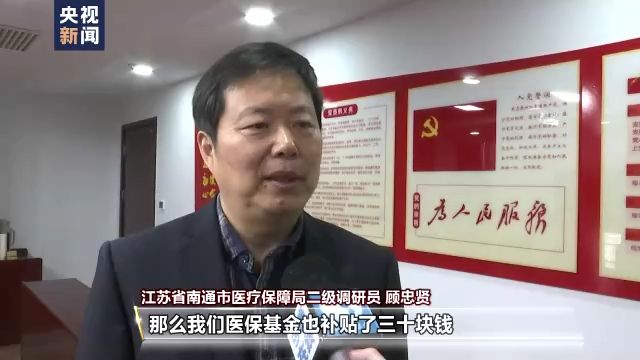 江苏省南通市医疗保障局二级调研员 顾忠贤:个人每年只需要缴纳三十块钱,我们医保基金也补贴了三十块钱,另外财政补助了四十块钱。