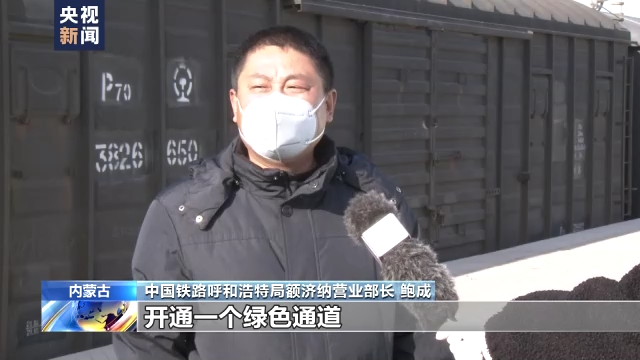 中国铁路呼和浩特局额济纳营业部长 鲍成:就是组织所有的人力、物力,开通一个绿色通道,包括把过去的正常的手续(简化),保证运输安全的情况下,一切从简。