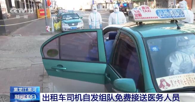 央视网消息:自黑龙江黑河市疫情发生以来,黑龙江省内多地纷纷派出医疗队前往支援。一支由黑河市的士司机自发组成的应急车队,主动承担起了免费接送医务人员的任务。