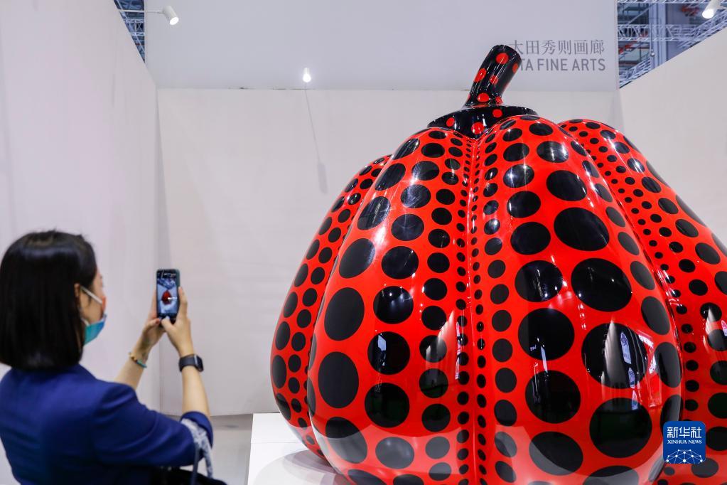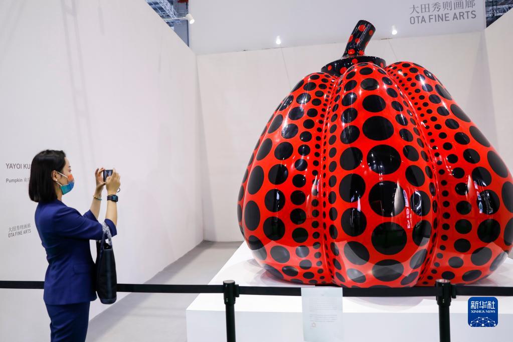 当日,日本艺术家草间弥生2019年创作的作品《南瓜》亮相第四届中国国际进口博览会服务贸易展区。