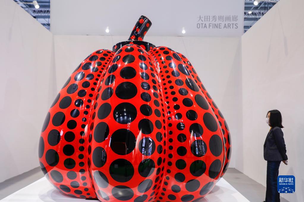 11月5日,观众在展馆内参观日本艺术家草间弥生的作品《南瓜》。